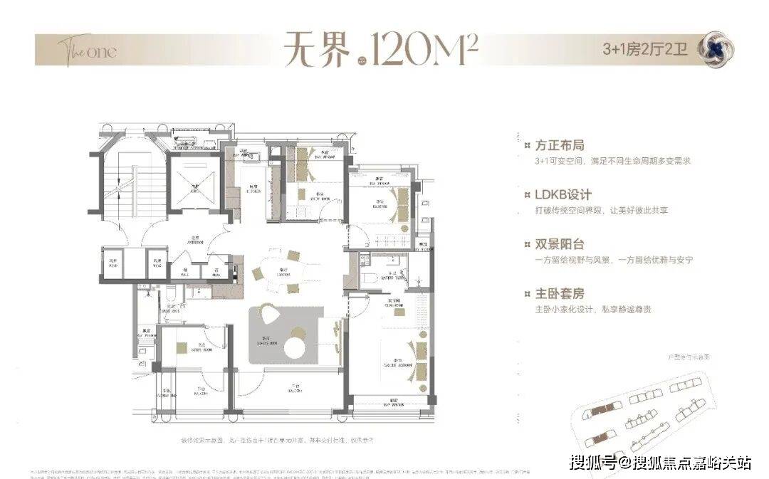 整体布局与140㎡户型基本一致,双南向阳台、独享电梯厅、6飘窗等户型拓展面积超过18㎡!